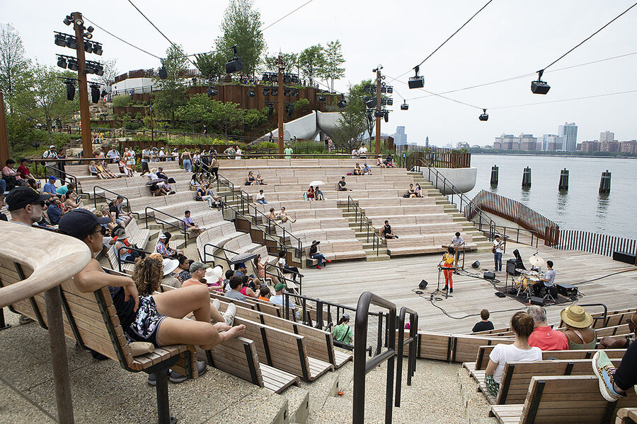 A new Gotham green space hovers above the Hudson River. Open since May, Little Island boasts selfie-worthy views of the jagged Manhattan skyline. The addition to Hudson River Park leads guests up a gangplank to a space – upheld by tulip-shaped concrete columns – where they can traipse short trails, enjoy live performances, and picnic on a grassy slope. The city is inseparable from the human-made oasis, as chatter blends with the muffled roar of the West Side Highway.