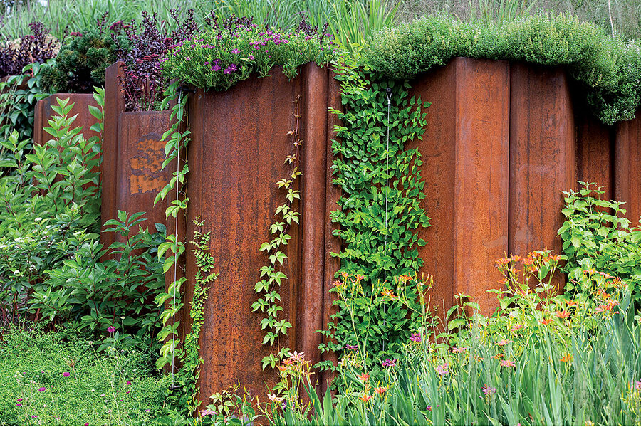 Waist-high blooms abound. Square tiles tinkle like bells when tapped by feet. One June afternoon a boy rolls down the slope, his shirt picking up loose strands of grass.