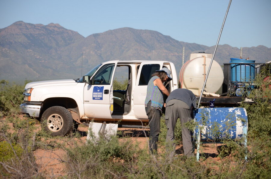 “We know the water is used,” says Stephen Saltonstall, a retired lawyer from Vermont and one of many volunteers who check the group’s water tanks once a week and refill them when needed.