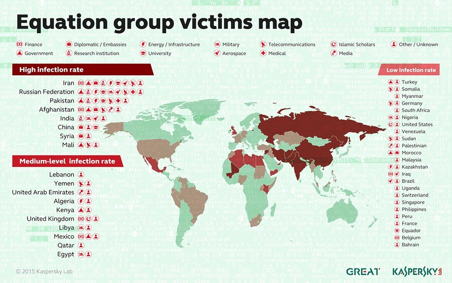 Five hundred infections in more 30 countries have been documented by Moscow-based Kaspersky Lab, with the highest levels of infection reported in Iran, Russia, Pakistan, and Afghanistan. Manufacturers Western Digital Technologies, Samsung Electronics, and Seagate Technology are among the top brand names affected worldwide.