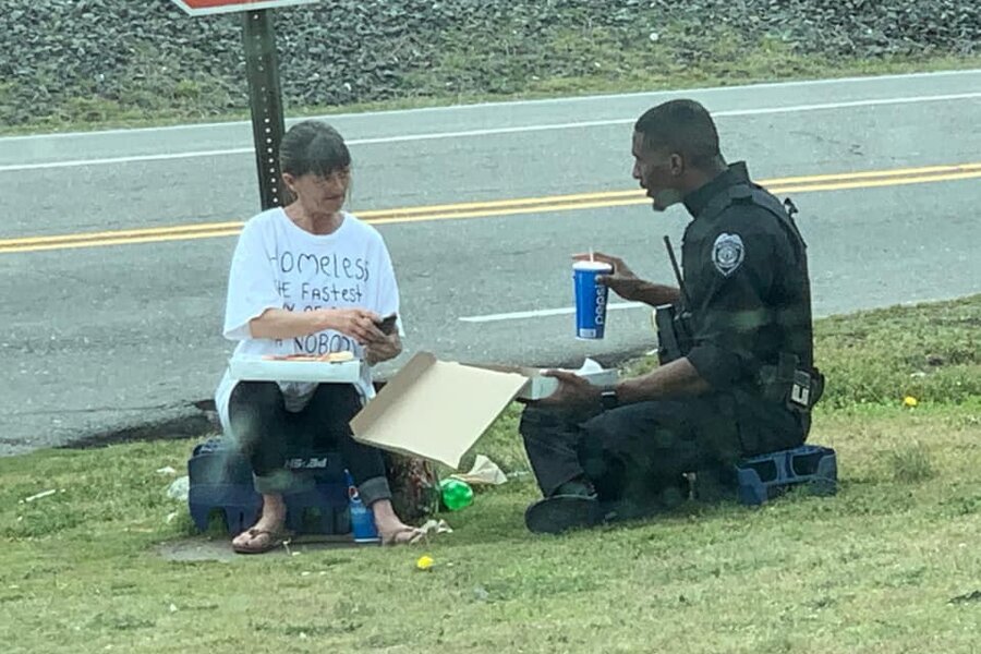 “God put it on my heart to get her lunch," the 29-year-old officer told CNN. "So I turned around and I asked her, 'Hey, did you eat today?' And she said, 'No.'" A passerby, Cassie Lea Parker, snapped a photo of the two sharing a pizza by the side of the road and her boyfriend posted it on Facebook. The photo has been shared 5,000 times.